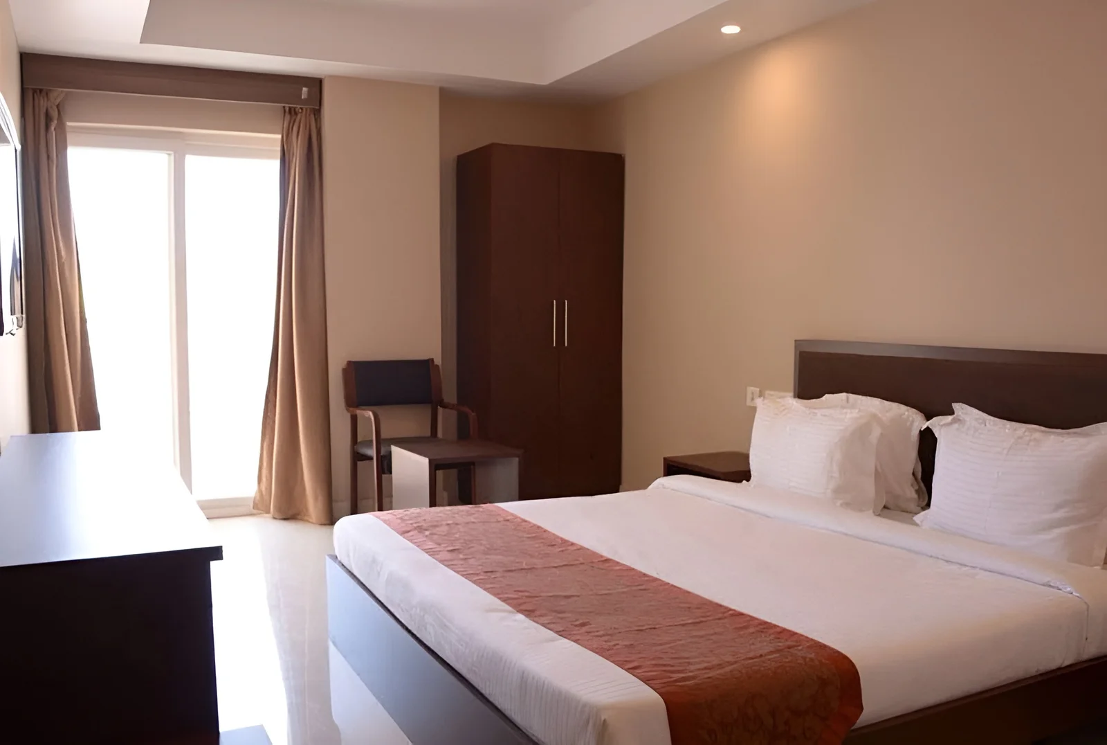 offers clean and comfortable rooms, pure vegetarian food, and a serene atmosphere that enhances